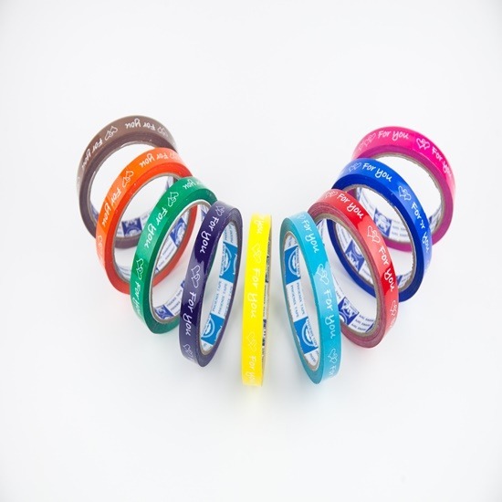 ขายส่งเทปพิมพ์ลาย เทปกาวพิมพ์ลายตัวอักษร เครื่องหมายการค้า โลโก้สินค้า หรือพิมพ์แบบลายสัญลักษณ์ต่างๆ เพื่อโฆษณาสินค้าหรือการขาย ช่วยในเรื่องของการป้องกันการปลอมแปลงหรือดัดแปลงผลิตจากฟิล์ม polypropylene คุณภาพสูงเคลือบด้วยกาวยางธรรมชาติ ทนน้ำและความชื้นได้ดี สามารถใช้งานได้ที่อุณหภูมิต่ำมากจึงเหมาะสำหรับใช้ในห้องเย็น ร้านค้า ร้านเบเกอรี ซุปเปอร์มาร์เก็ต ตัวอักษรและสีมีความคมชัด มีหลายสีให้เลือก สามารถเก็บเทปไว้ได้นานโดยที่กาวและสีไม่ลอก